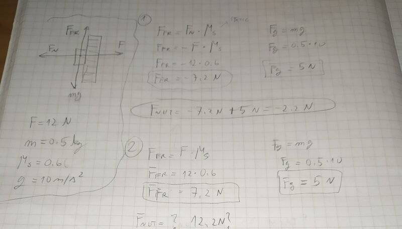 Here is the photo. Problem goes; will the body(0.5 kg) move when pressed with force F=12 N against wall with static coef. of friction = 0.6.
