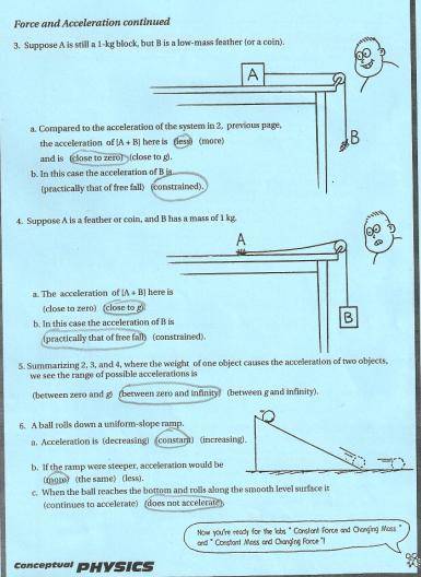 The discussion revolves around a homework question related to force and acceleration, specifically focusing on question 5. Participants clarify that the acceleration of a falling object cannot exceed the acceleration due to gravity (g), regardless of the object's mass. There is an emphasis on the interdependence of the questions, particularly between the second and third questions. The conversation also includes a request for further assistance with additional questions. Overall, the key takeaway is the understanding that acceleration is limited by gravitational forces.