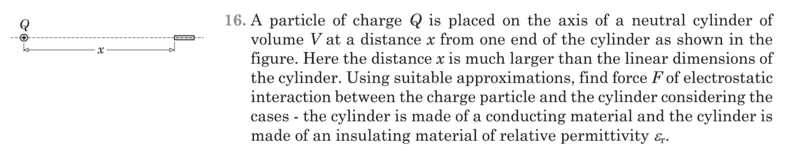 The discussion revolves around the forces between a charged particle and a conducting cylinder, exploring the behavior of electric fields and induced charges in the context of electrostatics.