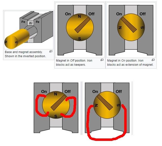 I have an ordinary switchable magnet for holding tools to a lathe. It's like a magnetic force gearbox, but I can't quite understand the force multiplication.