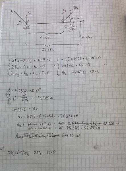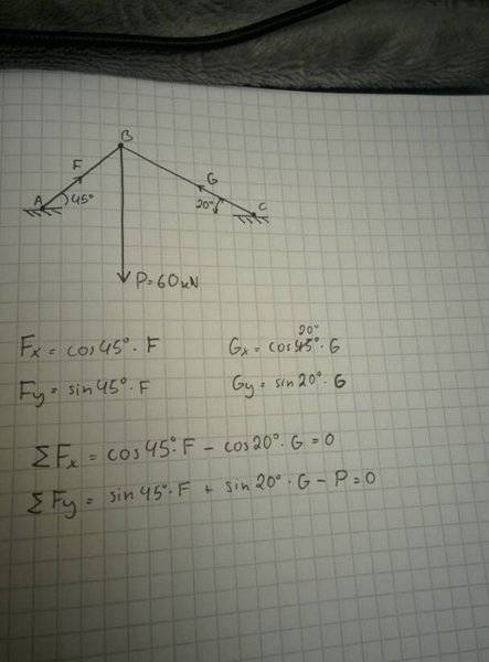 The discussion revolves around calculating forces on supports at an angle, specifically focusing on a scenario involving a force of 60 kN and angles of 45 and 20 degrees. Participants are tasked with determining the forces at points A and C and representing these forces as vectors.