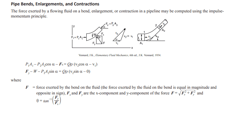 Fx = P1A1 - P2A2Cosa+ Qp(V2Cosa +V1)