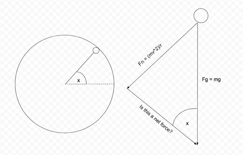 Because I am making the vertical component of Fn equal to Fg, as that is when it will start to fall. But this is wrong obviously, and I'm realising how bad my intuition is.