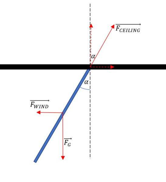 My first instinct was to assume the angle of the reaction force at the ceiling is unknown, then prove its also 17 degrees. But how can you do that without writing a torque equation?...