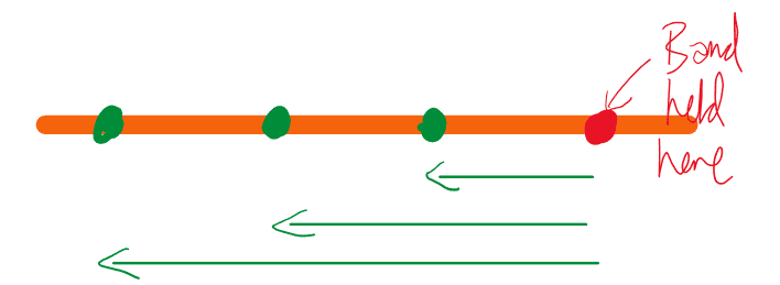 With the next set up, the band is now anchored and pulled at a certain angle: