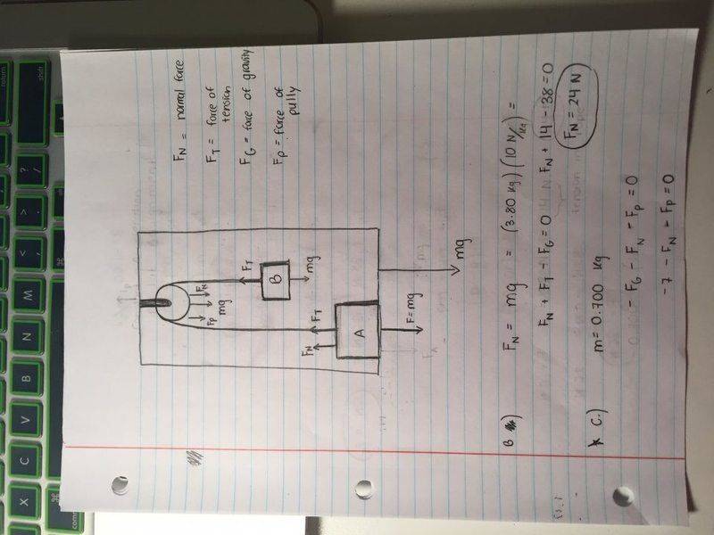 to find the tension in the rope attached to weight B, since I figured that only this block would be giving the rope a tension.(b) Calculate the magnitude of the force exerted on block A by the floor of the elevator.