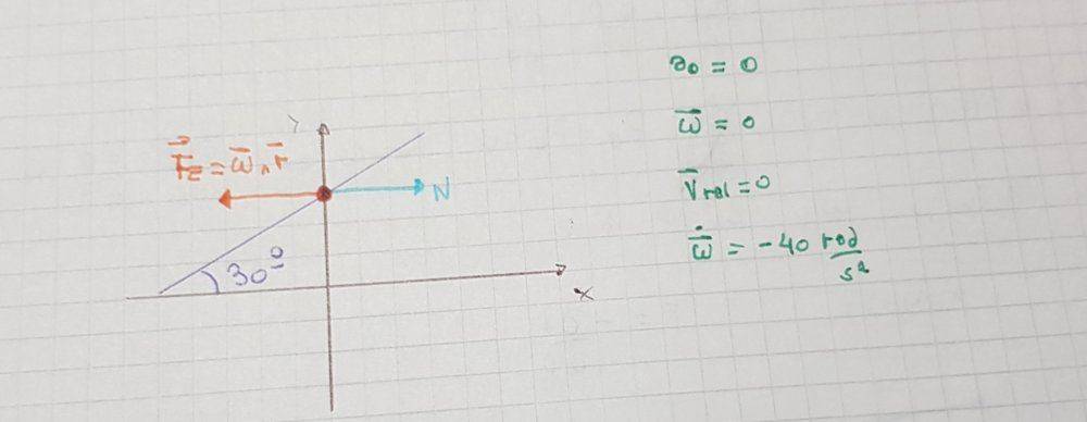 The disk is at rest and the slider is in the position depicted in the picture when an angular acceleration of ##40 \frac{rad}{s^2}## is applied to the disk with a clockwise direction.