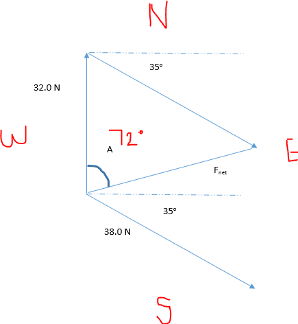 There is ongoing exploration of the angles and methods to calculate the net force. Some participants have provided guidance on using vector representation and resolving components, while others are clarifying misunderstandings about the angles involved.