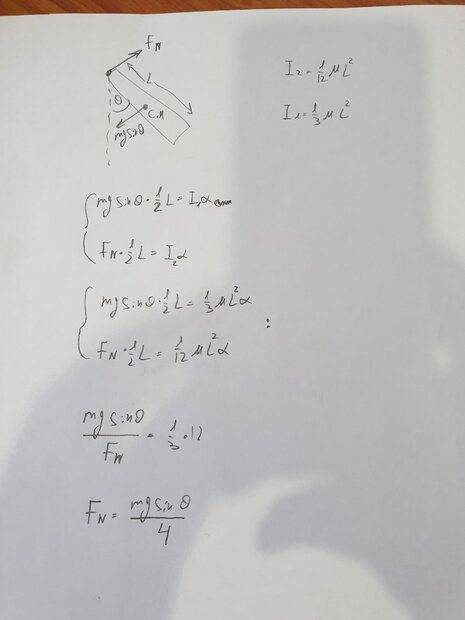c- i try to calculate the normal force that acts toward the pivot point