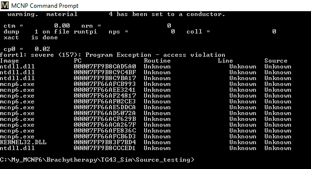 This discussion may be useful for users of MCNP6 experiencing similar access violation errors, as well as those interested in troubleshooting coding issues related to Fortran programs.
