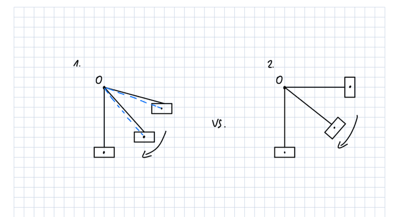 I understand how to calculate the potential energy and kinetic rotational energy for a simple pendulum consisting of a rod with an attached mass, using the moment of inertia. However, with this linkage system, I don't know how to include the moment of inertia for the rod AD and the rod BC, as they are turning around a separate axis. To make it even more difficult, the rods are crossing each other once it reaches a certain angle/height, twisting the attachement.