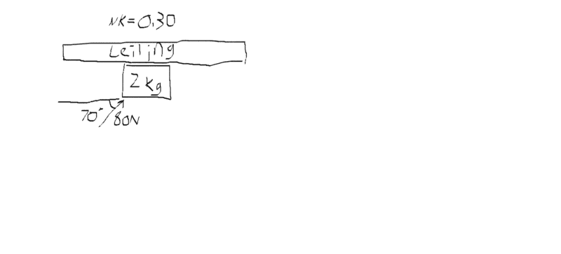 The discussion revolves around creating a free body diagram for a 2kg block being pushed against a ceiling by an angled force of 70 degrees. The participants are focused on identifying the forces acting on the block and their respective directions.