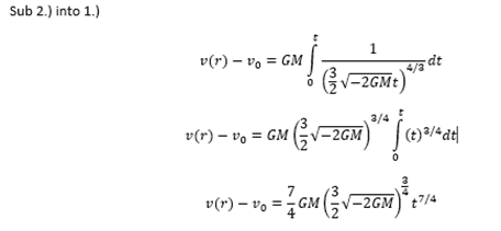 I'm trying to calculate the distance of free fall for an object with zero tangential velocity but a given radial velocity at a given height over a given period of time. This calculation cannot assume that g is constant as it deals with orbital heights. These calculations are needed for an orbital ring that I'm designing. Here is my working out so far.