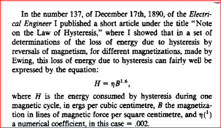 Steinmetz figured out that hysteresis loss per cycle is ηB