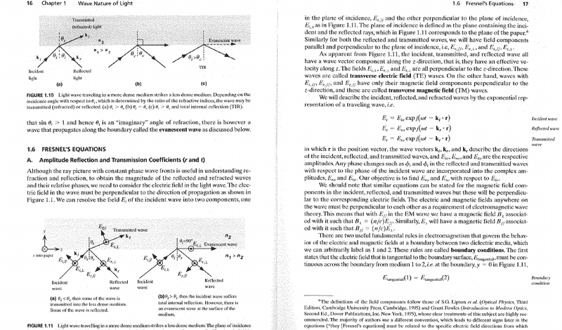 - I get to the point where this comes from Fresnel's equations and that the reflection coefficients can be expressed as complex numbers with magnitudes and phases, but I don't see how that follows to the end result. This book often just jumps to a conclusion, and unless you've seen it before, you end up feeling like you're memorizing something you'll forget in like 3 months.