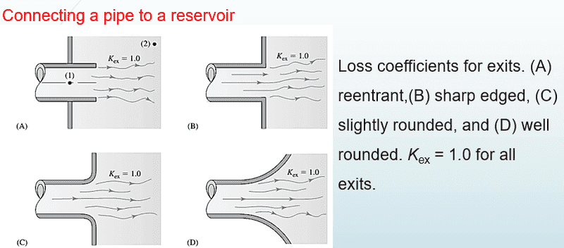 - Participants are questioning whether the coefficient k remains equal to 1 when water is discharged into the atmosphere, as opposed to a reservoir. There is an exploration of the conditions under which k might differ, particularly concerning flow characteristics at the exit point.