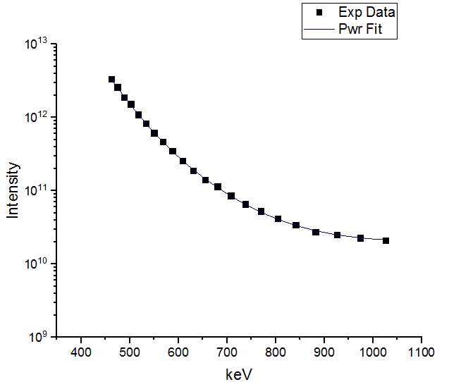 haruspex said:The "power fit" graph you posted is log-linear, so is y in the power equation the number of ions (intensity?) or the log of the number? If you were to plot x-4 on log-linear I would expect a straight line.