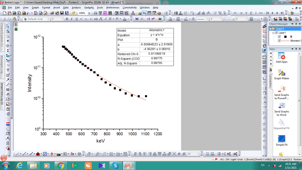 This is another plot with power law fit in origin for the same device:haruspex said:I assume the two columns in the data you posted are respectively x, y.
