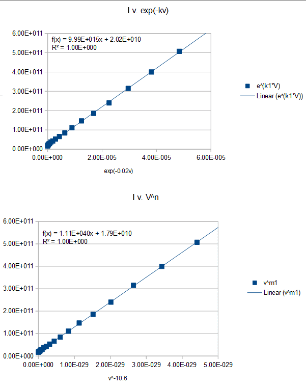The graph is an excellent fit to ##y_{pow}=2.28*10^{-23}y_{exp}+1.01*10^{-29}##. I found this very hard to believe, but I cannot see any errors in my work.