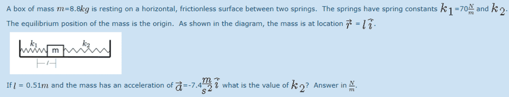 The discussion revolves around a problem related to the forces acting on a spring, specifically focusing on the equations of motion and the directionality of forces involved. Participants are examining the relationship between mass, spring constants, and displacement.