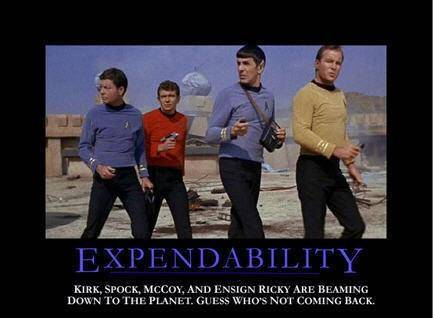 anyone that really followed star trek, particularly the original series, realized reasonably quickly that the guys in the red shirts had a pretty short life span