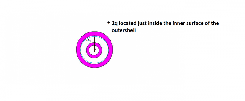 The whole charge is -2q, and it is distributed evenly on the outer surface of the inner shell.gracy said:I was asking we take the +2q as a whole in spite of the fact that they are distributed.