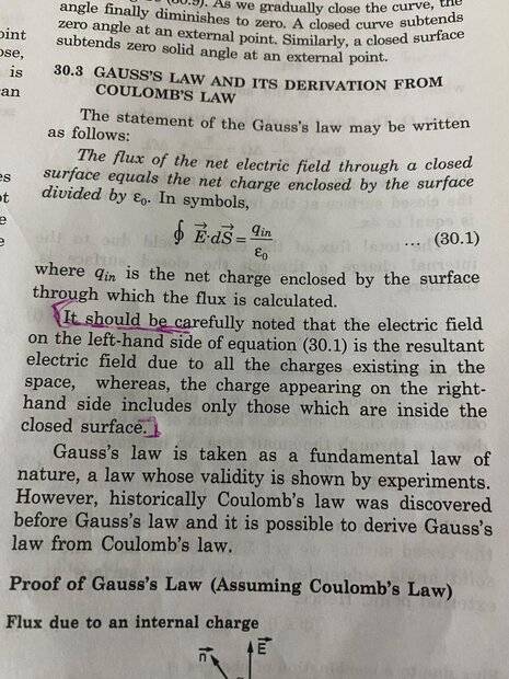 My teacher said that gauss law may not accounts for the field due to the outside charges in the LHS in this expression