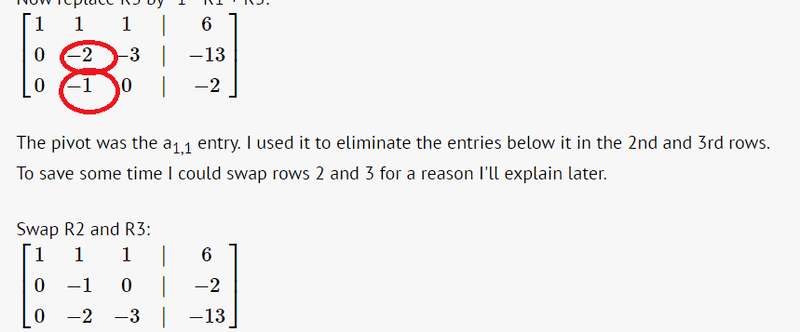 To save some time I could swap rows 2 and 3 for a reason I'll explain later.