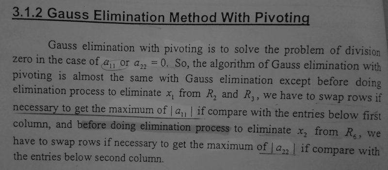 1) interchanging rows to get the the max a11 ,