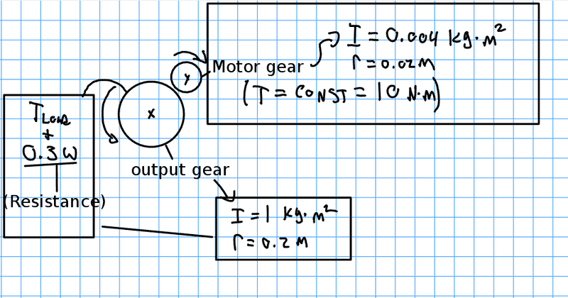 Basically, I've written a small problem where we have an input gear with constant torque and an output gear with a load on it. If I apply a gear ratio of 1, I get a lower angular acceleration than if I do a gear ratio of 10 (output has 10 times the teeth) -- this makes sense.