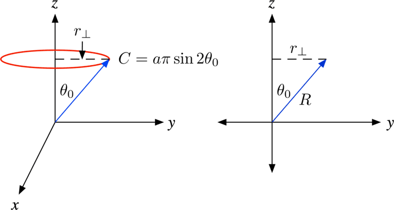 circumference: \int_{0}^{2\pi} a sin\theta_0 cos\theta_0 d\tau = 2\pi a sin\theta_0 cos\theta_0 = \pi a sin2\theta_0