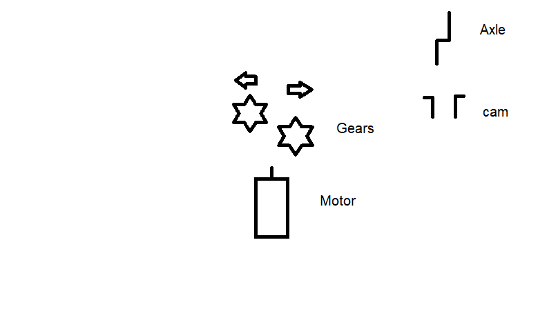 4. The axle that should rotate back and forth is roughly Z-shaped with an "offset" part that will be touched by the cams.