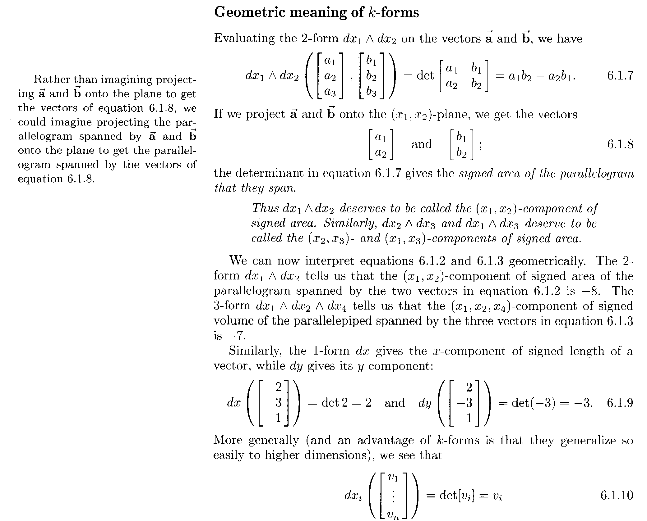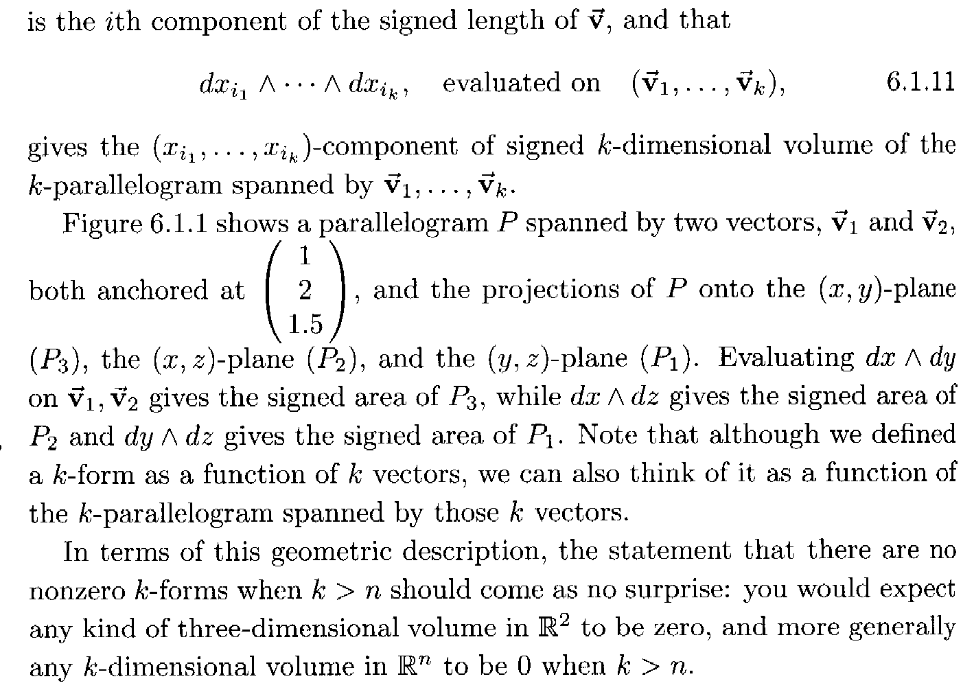 Peter=========================================================================================It may help MHB readers of the above post to have access to H&H's section on the Geometric Meaning of k-forms ... so I am providing the text of the same ... as follows: