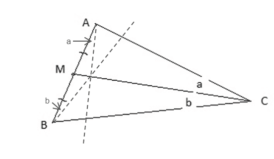 The discussion centers on proving that the intersection point of two lines, formed by angles ∠ ACM and ∠ MCB at points A and B respectively, lies on the line segment CM in triangle ABC, where M is the midpoint of side AB. Participants suggest using Ceva's Theorem as a potential method for the proof, although some express uncertainty about its applicability. Key insights include the importance of establishing the equality |MX| = |MY| to demonstrate that the intersection points coincide. The discussion emphasizes the use of geometric constructions and properties of similar triangles to facilitate the proof.