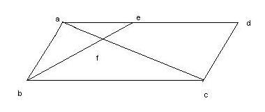 In the parallelogram ABCD, AE:ED = 1:2. B is joined to E on AD. A is joined to opposite vertex C. Intersecting point labelled F.