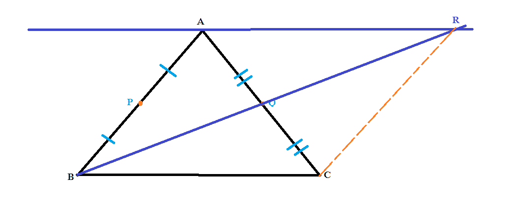 The midpoints of the sides AB and AC of the triangle ABC are P and Q respectively. BQ produced