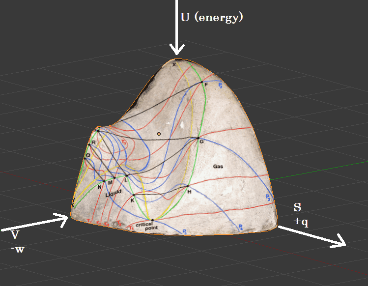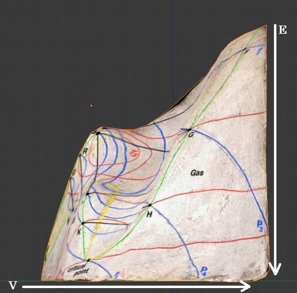 I was hoping to discover thermodynamic relationships this surface may help visualize. I have created a 3D model of the surface (I can attach the .blend file when I get to the computer lab) that allows many different perspectives.