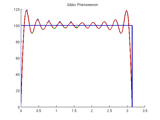 I am looking at the Gibbs Phenomenon for the function $\displaystyle{f(x)=sgn(x), x \in [-\pi, \pi]}$.