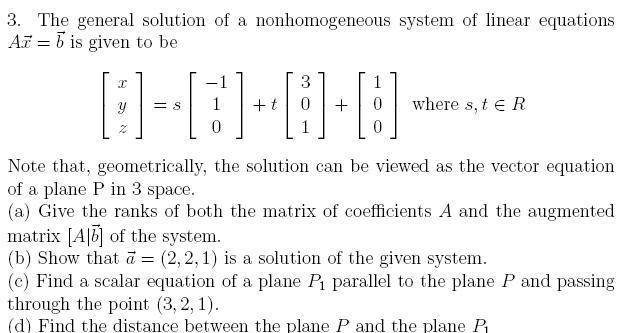 b) for b part should i just plug in that coordinate in the x,y,z vecotr form to solve for s, and t and hope for the same answer to show it is a solution