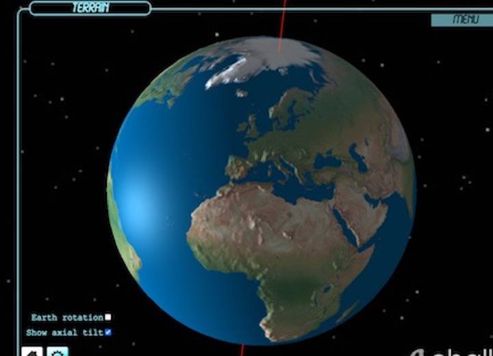 is a region of daylight that accounts for 50% of the globe, with other bands indicating various types of twilight. This daylight region should align nicely with a 3D view of the Earth. Link here: https://www.echalk.co.uk/Science/physics/solarSystem/InteractiveEarth/interactiveEarth.html