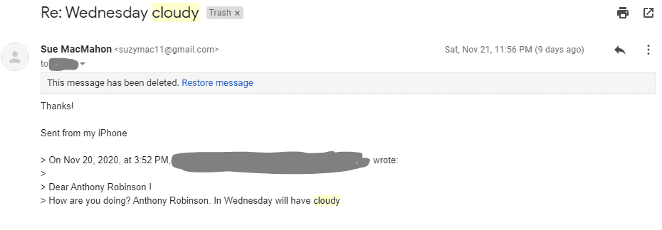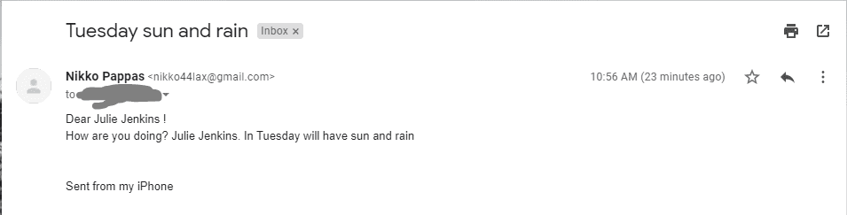 Other email texts include: