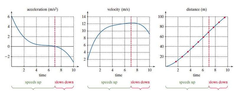 - Velocity graph, find where acceleration is zero and where acceleration is maximum.