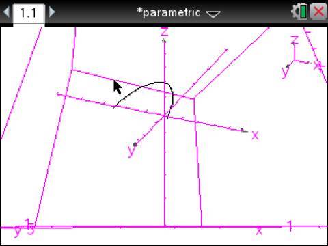 The discussion revolves around the graphing of 3D parametric equations, specifically the equations x=t, y=t^2, and z=2, using the Nspire calculator. Participants explore the nature of the resulting graph and its dimensional characteristics.