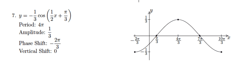 (2) y = (-⅓) cos ( (½) x + (π/3) )