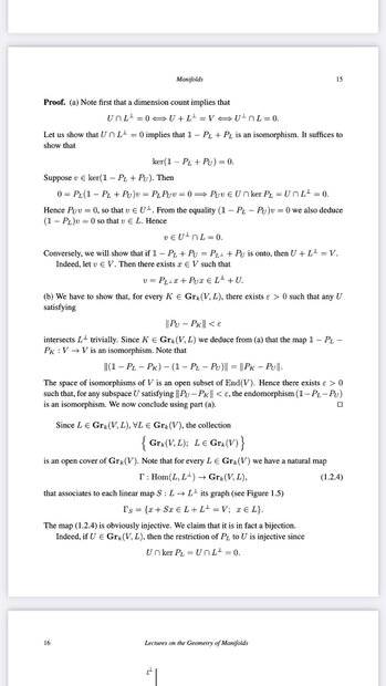 3. Proof ends on showing that corresponding subspaces are isomorphic with homomorphism but in manifold theory I need a map to ##R^n## or ##C^n##. How one approaches the latter?