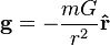In Newtonian mechanics, the gravitational acceleration g at a distance r from the gravitating object is given by
