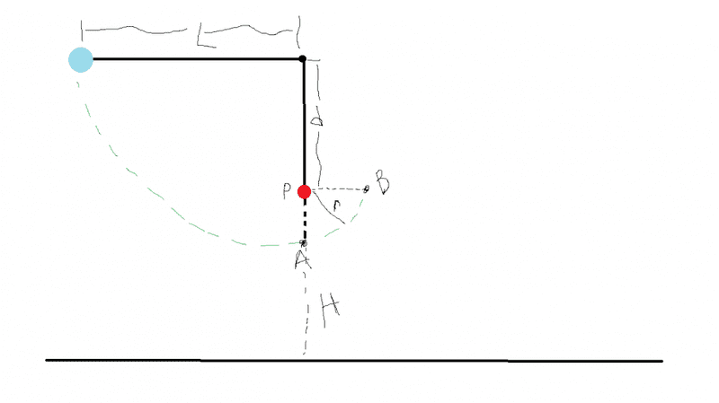 The string (in the pic) is L=120 cm long,has a ball attached to one end,and is fixed as its other end.The distance d from the fixed point end to a fixed peg at point P is 75.0cm.When the initally stationary ball is released with the string horizontal as shown,it will swing along the dashed arc.Whats its speed when it reaches (a) its lowest point and (b) its higest point after the string catches on the peg ?
