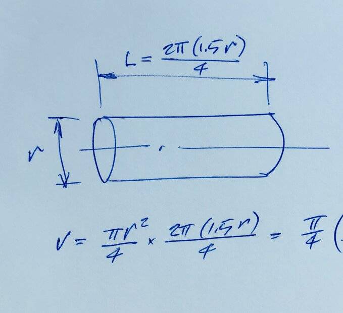 Participants have offered various approaches to the problem, including straightening the elbow to simplify the volume calculation. There is ongoing clarification regarding the area of the cross-section, with some participants affirming the correctness of certain expressions while others question the assumptions made.