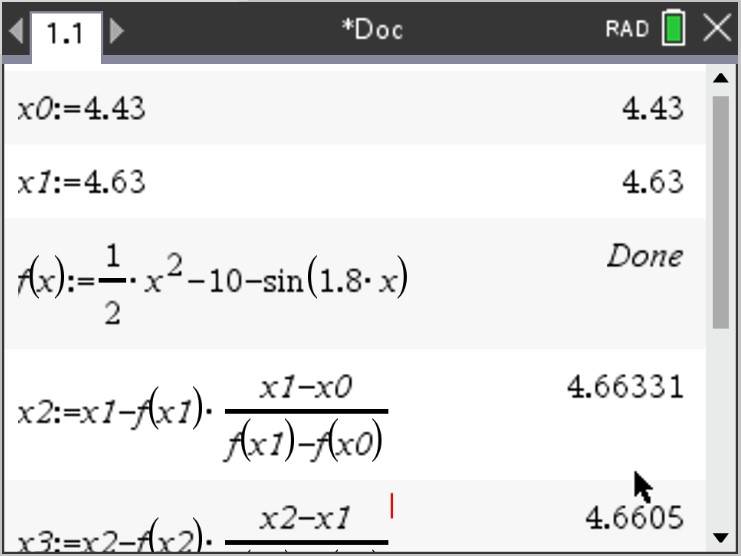 if your initial estimates are $\displaystyle x_0 = 4.43 $ and $\displaystyle x_1 = 4.63 $.