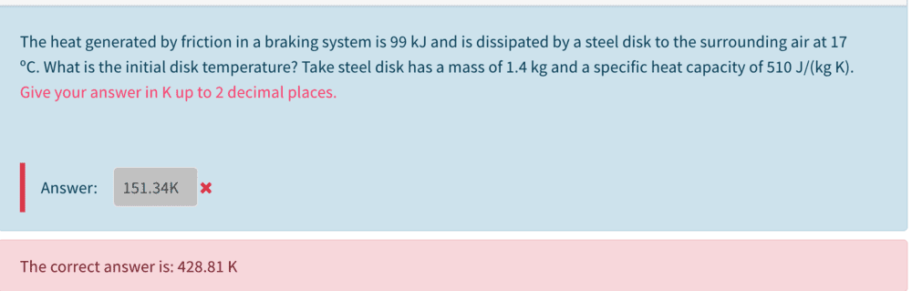 The discussion revolves around a problem involving heat dissipation by a steel disk, specifically focusing on the calculation of temperature changes related to heat energy loss. The subject area includes thermodynamics and heat transfer principles.